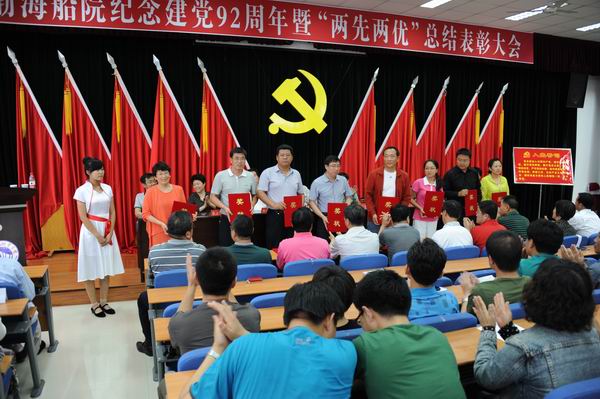 7月1日下午,我院隆重舉行了紀(jì)念建黨92周年暨兩先兩優(yōu)總結(jié)表彰大會,表彰了船舶工程系等8個先進黨總支、教務(wù)處等8個先進黨支部、彭輝等85名優(yōu)秀共產(chǎn)黨員、牛國林等15名優(yōu)秀黨務(wù)工作者。院領(lǐng)導(dǎo)芮柏苓、孫元政、費厚第、鄭海濤、叢培亭、蔡立平、組織部長高俊東、宣傳部長劉鵬翔出席大會并在主席臺就坐。大會由副書記費厚第主持。