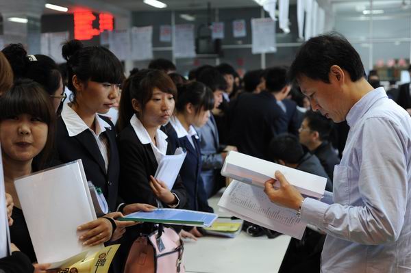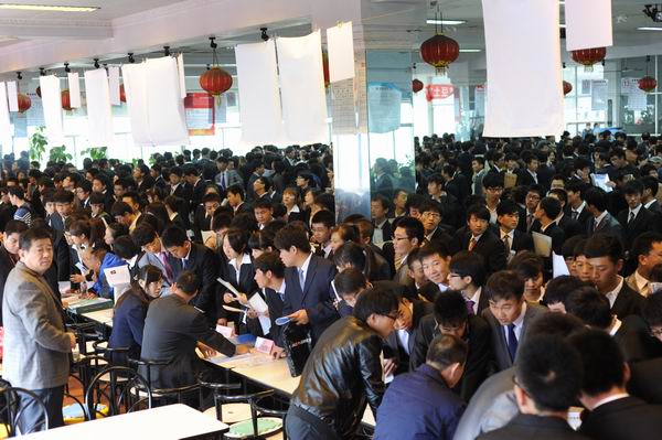 我院2348名2013屆畢業(yè)生準(zhǔn)備充分,著裝整潔,簡(jiǎn)歷清晰,在意向單位的展臺(tái)前與對(duì)方認(rèn)真交流。兩天時(shí)間里,約60%的畢業(yè)生與用人單位簽定了就業(yè)意向。(宣傳部)