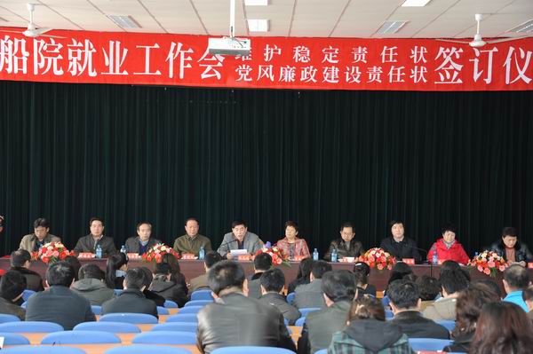 3月12日下午,在龍灣校區(qū)綜合樓報告廳,我院隆重舉行畢業(yè)生就業(yè)工作總結(jié)表彰大會暨維護(hù)安全穩(wěn)定、黨風(fēng)廉政建設(shè)責(zé)任狀簽訂儀式,院領(lǐng)導(dǎo)芮柏苓、孫元政、費(fèi)厚第、董樹剛、鄭海濤、叢培亭、蔡立平、李福生、組織部長高俊東、宣傳部長劉鵬翔出席大會并在主席臺就坐,中層干部、學(xué)工人員、2011屆2012屆畢業(yè)班班主任、受表彰人員等100多人參加了會議,大會由主管就業(yè)工作的副院長鄭海濤主持。