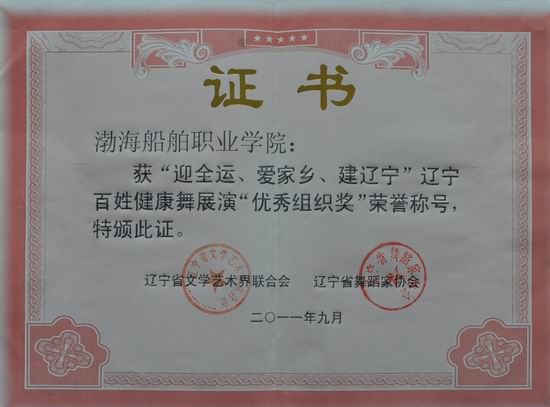 在遼寧省文學(xué)藝術(shù)界聯(lián)合會(huì)、省舞蹈家協(xié)會(huì)主辦的“迎全運(yùn)、愛家鄉(xiāng)、建遼寧”遼寧百姓健康舞展演活動(dòng)中,鄧福昌、楊紅英、劉揚(yáng)三位老師由于參與輔導(dǎo)的節(jié)目《龍船調(diào)》、《玫瑰玫瑰我愛你》、《軍歌聲聲》成績(jī)優(yōu)異,分別榮獲“優(yōu)秀輔導(dǎo)教師”稱號(hào),我院榮獲“優(yōu)秀組織獎(jiǎng)”稱號(hào)。(宣傳部)