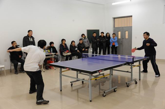12月8日,歷時(shí)一個(gè)月的我院第五屆教職工乒乓球賽圓滿結(jié)束,劉軍(后服中心)獲得男子單打冠軍,周明遠(yuǎn)(材料系)獲亞軍,王東(體育部)獲第三名;王紅(體育部)獲女子單打冠軍,李桂杰(基礎(chǔ)部)獲亞軍,楊麗(師范系)獲第三名;王東、王紅獲混雙冠軍,張俊杰、李桂杰獲混雙亞軍,姜延興、楊松梅獲混雙第三名?;A(chǔ)部、體育部、師范系、教務(wù)教發(fā)、蓮花校區(qū)、組織紀(jì)檢財(cái)務(wù)科技等工會(huì)獲優(yōu)秀組織獎(jiǎng)。